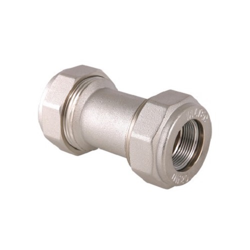 Корпус и накидная гайка фитингов изготовлены из сантехнической латуни, никелированы, разрезное обжимное кольцо («сухарь») – из закаленной нержавеющей стали, которая намного превосходит по твердости материал соединяемой трубы. Смыкаясь при завинчивании накидной гайки, кольцо врезается в стенку трубы, надежно фиксируя соединитель. Через латунную шайбу «сухарь» воздействует на толстое уплотнительное кольцо из EPDM Sh70, плотно обжимающее трубу и герметизирующее соединение.